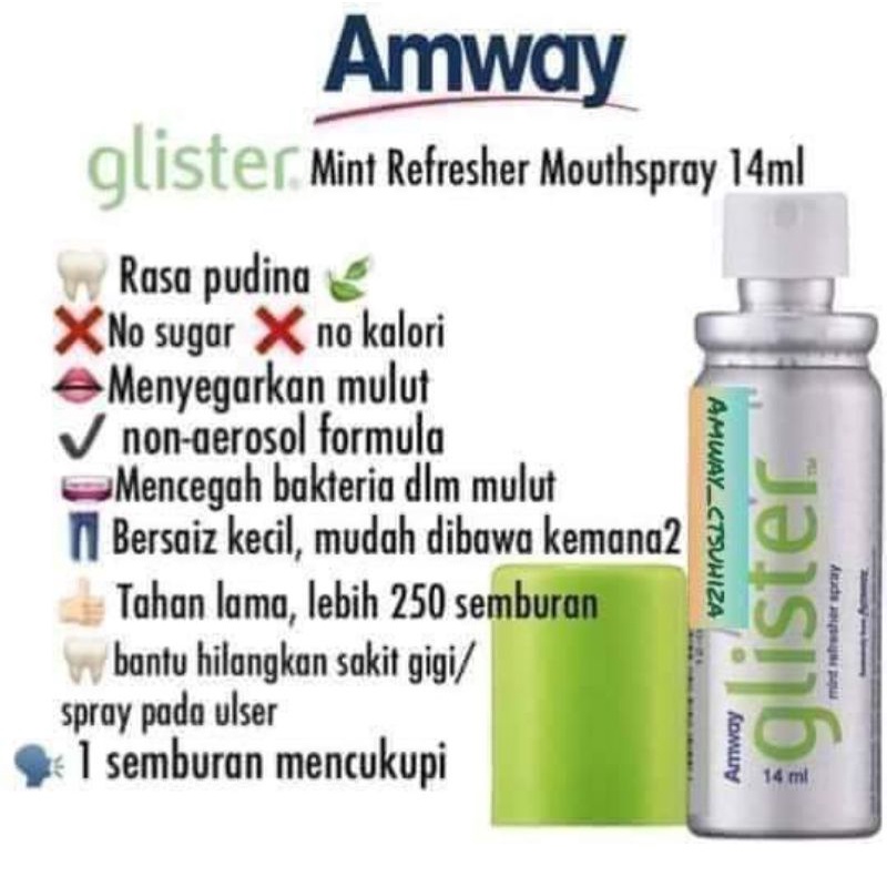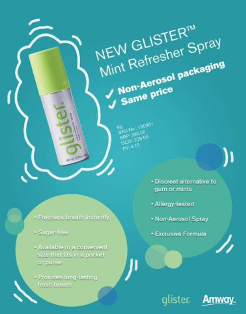 Selasa 26 Oktober 2021 Tambah Komentar Edit. The Amway Glister Mint Refresher Spray is now available in Malaysia. Today you can find selected Amway products on iPrice at affordable prices.